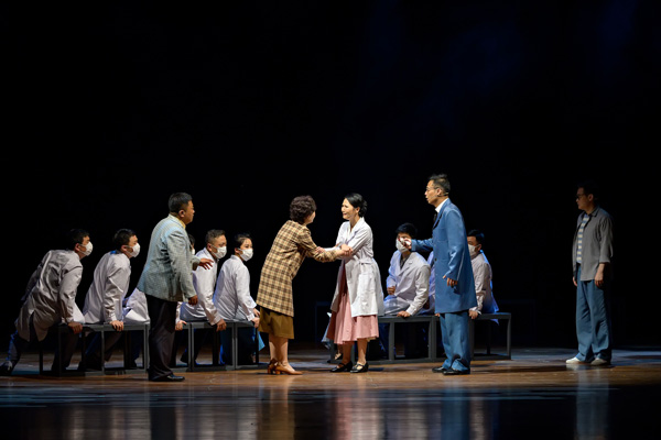 如果说剧本是骨骼,那么舞台意象便是赋予它生命的血肉。《沧浪之水》的舞美以象征手法营造精神氛围。池大为遭遇集体举报时,舞台上的演员戴上冷漠的白色面具,仿佛现实里那些失去本心的沉默者。灯光的忽明忽暗同样耐人寻味:煤油灯的摇曳,是父辈理想的光亮,也是随时可能熄灭的脆弱。有限的舞台空间,被调度成丰富的精神空间,观众在虚与实之间感受到理想的微光与现实的压迫。这种艺术处理,让剧作超越了个人命运的叙述,而具有更为普遍的象征意义。